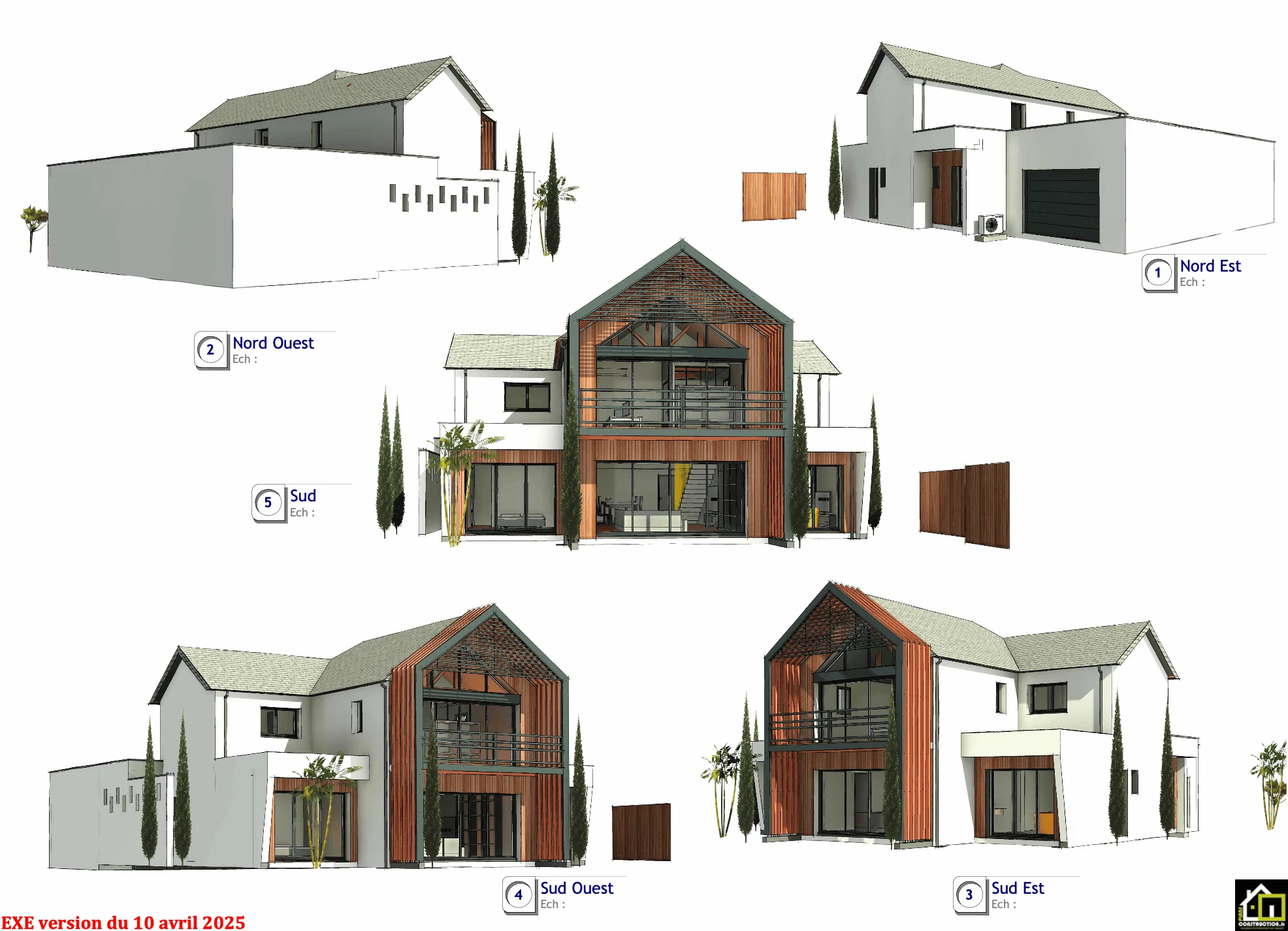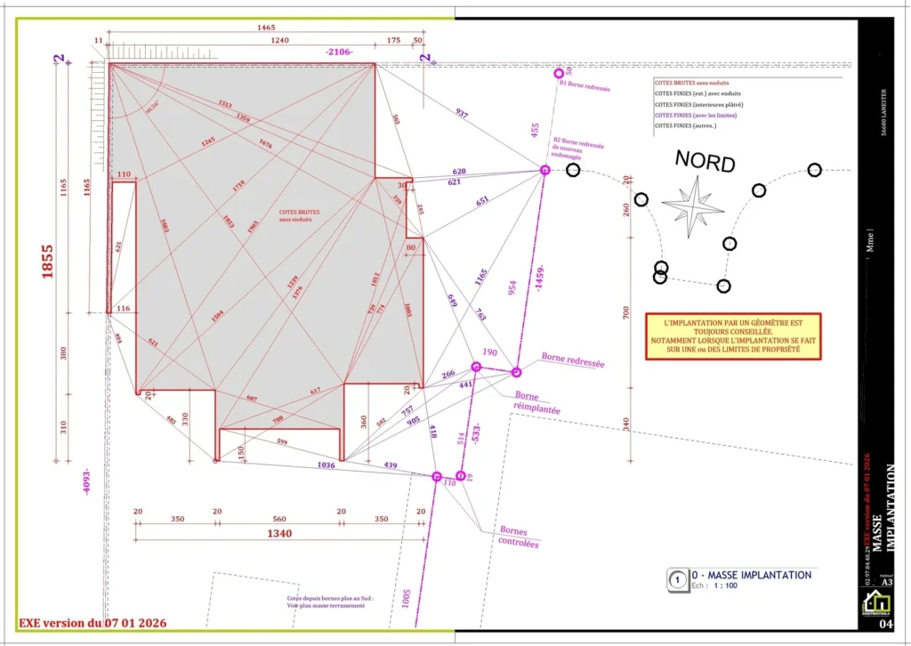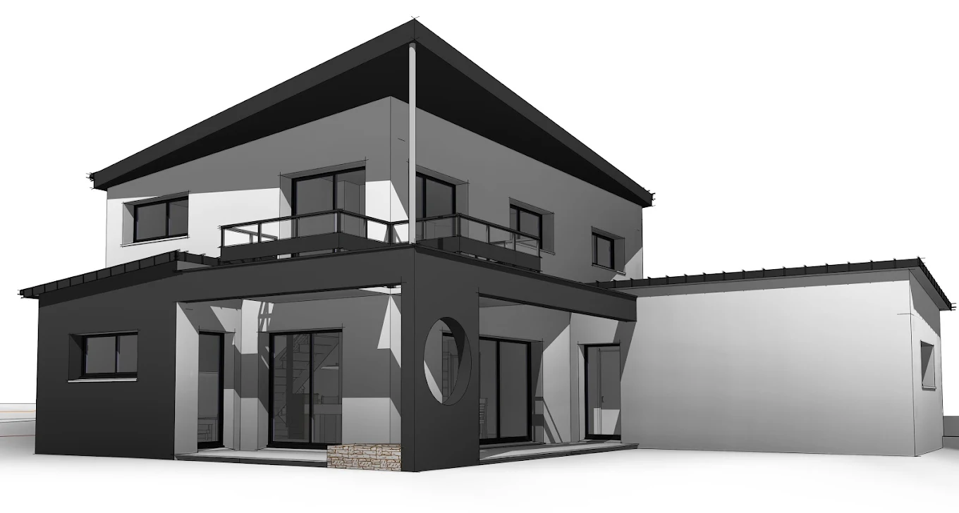 Plans de masse, niveaux, façades et coupes. Vous validez l’agencement et l’implantation.