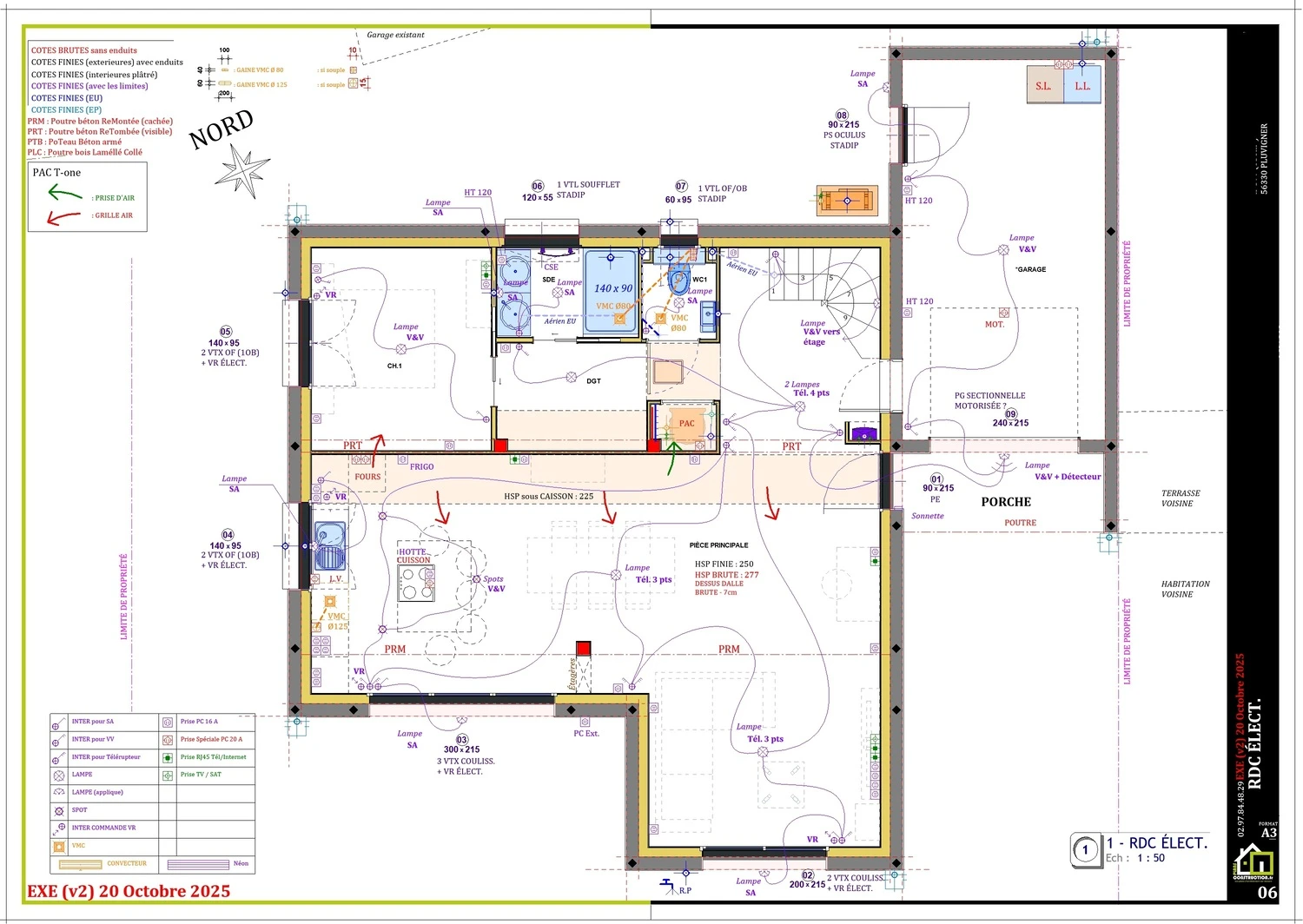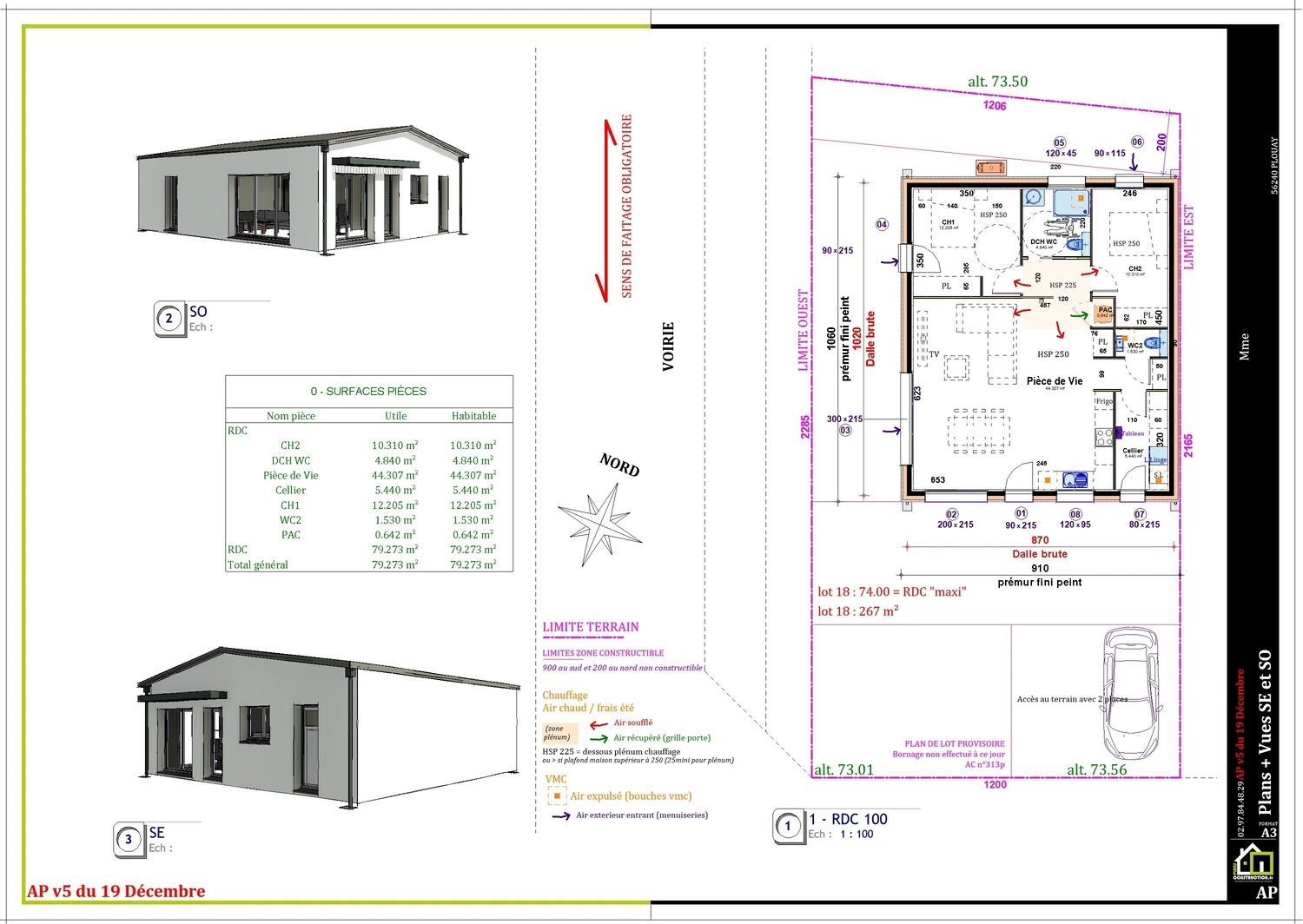Plans techniques détaillés par corps d’état : terrassement, maçonnerie, charpente, couverture, menuiseries, électricité, plomberie, chauffage, isolation, finitions.